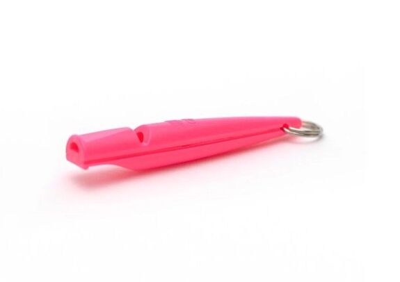 Sifflet en matière plastique, avec un anneau métallique pour associé à un cordon.